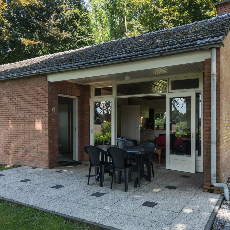 Twee-onder-een-kap bungalow voor 4 personen, ligbad, parkeren naast de bungalow.